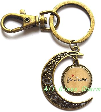 Amazon Com Beautiful Moon Keychain Je T Aime Moon Keychain Moon